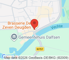 Brasserie de VII Deugden, het gezellige restaurant tegenover de brug de Vecht in Dalfsen, met verschillende zalen en zomers een geweldig terras.